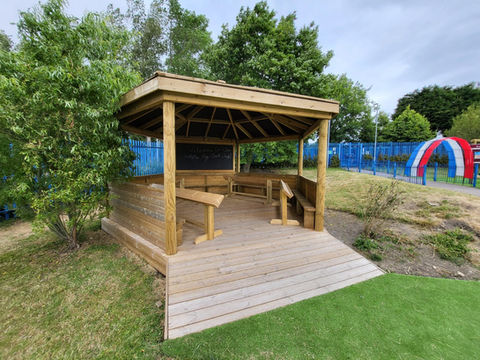 Gazebo: Go big and bold with our 5.5m show-stopper gazebo! Add a decked base and access ramp to create an inviting, inclusive space where even more children can play and explore together.